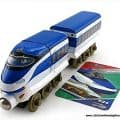 This blue metal casted train toy is from Master Toys and Novelties. It has shiny and glossy details. The set features sounds and lights that usually bring loads of joy and long hours of fun. This die-cast metal train does not come with a train track but can perfectly run on smooth floors. The train toy measures to about 6 inches in length, 2.5 inches in height and 2 inches wide.