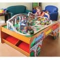 Express consists of six wood pieces that are assembled to each other with screws, washers, and nuts; you only need a screwdriver. The Standard Express works with train table’s that is 14-1/2 inches high (from floor to play surface). The Custom Expresses have been made for train tables that are 27-3/4 inches high!