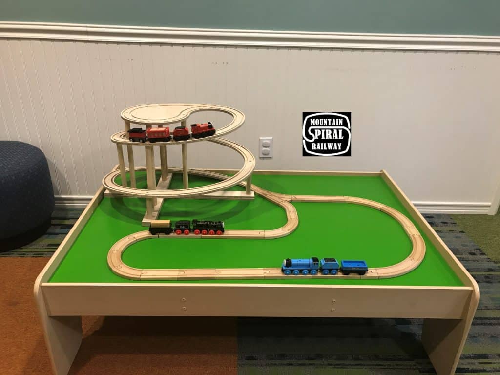 Due to its grand size, the original Mountain Spiral Railway doesn’t lend itself to play upon train tables, rather we always play with it on the floor. I realized that not everyone has floor space for a track this large, so I elected to create a table-top version.